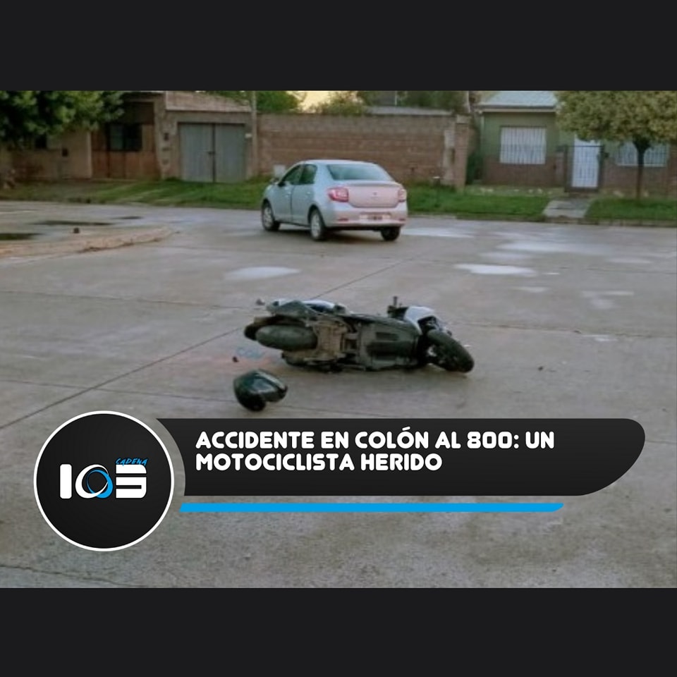 Este jueves por la tarde, un motociclista resultó herido tras colisionar con un auto en la intersección de Colón al 800, en cercanías de avenida Alberdi. Por la violencia del impacto, el conductor de la moto debió ser trasladado al Hospital Municipal para evaluar sus lesiones.