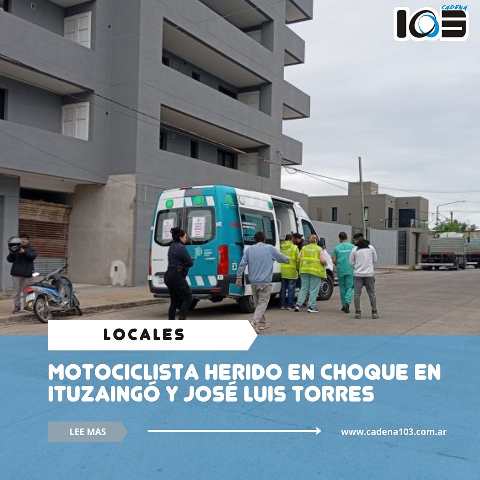 Motociclista herido en choque en Ituzaingó y José Luis Torres