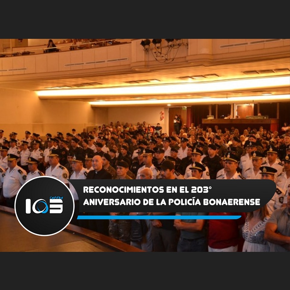 Este viernes por la mañana, el Teatro Municipal fue el escenario del acto conmemorativo por el 203° aniversario de la Policía de la Provincia de Buenos Aires. La ceremonia contó con la presencia de autoridades municipales y policiales, representantes de instituciones civiles, efectivos de distintas fuerzas de seguridad y sus familias.