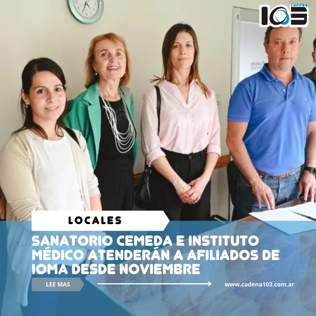 El Sanatorio CEMEDA y el Instituto Médico Olavarría firmaron un convenio con el Consorcio del Centro de la Provincia de Buenos Aires (Coceba) para ofrecer atención a afiliados de IOMA. Este acuerdo, que entrará en vigor el 1° de noviembre, permitirá que los profesionales que acepten trabajar con IOMA utilicen las instalaciones de estas clínicas.