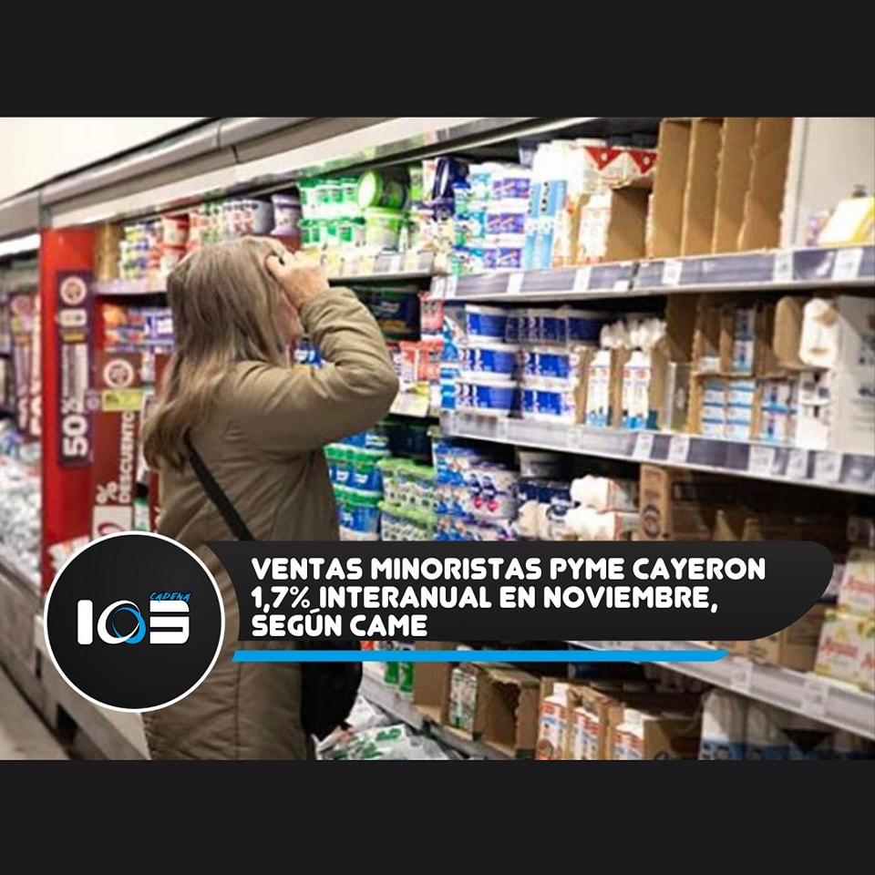 Las ventas minoristas de pequeñas y medianas empresas (pymes) registraron una caída del 1,7% interanual en noviembre, según un informe de la Confederación Argentina de la Mediana Empresa (CAME). En lo que va del año, acumulan un descenso del 12,2%, aunque en la comparación mensual desestacionalizada crecieron un 3,9%.
