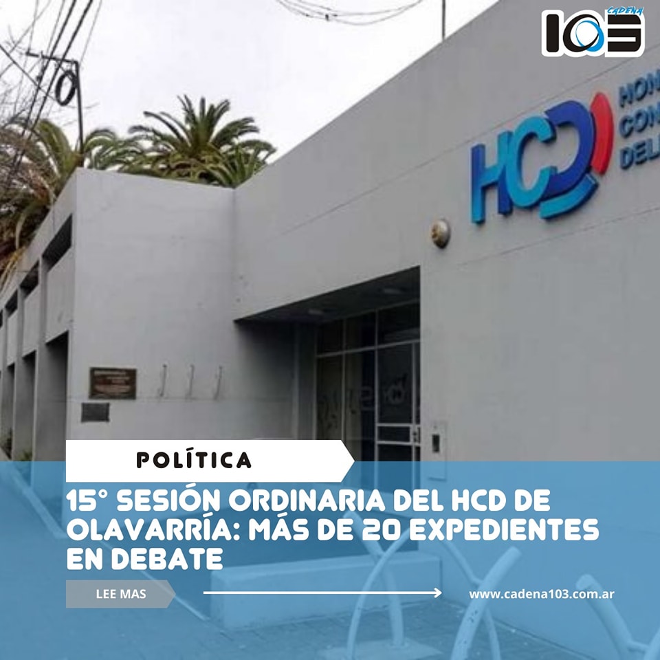 Este jueves 24 de octubre, desde las 9 de la mañana, se llevará a cabo la 15° Sesión Ordinaria del Honorable Concejo Deliberante de Olavarría. La sesión tendrá lugar en el Centro de Convenciones Olavarría (CEMO) y será transmitida en vivo por el canal de YouTube del HCD.