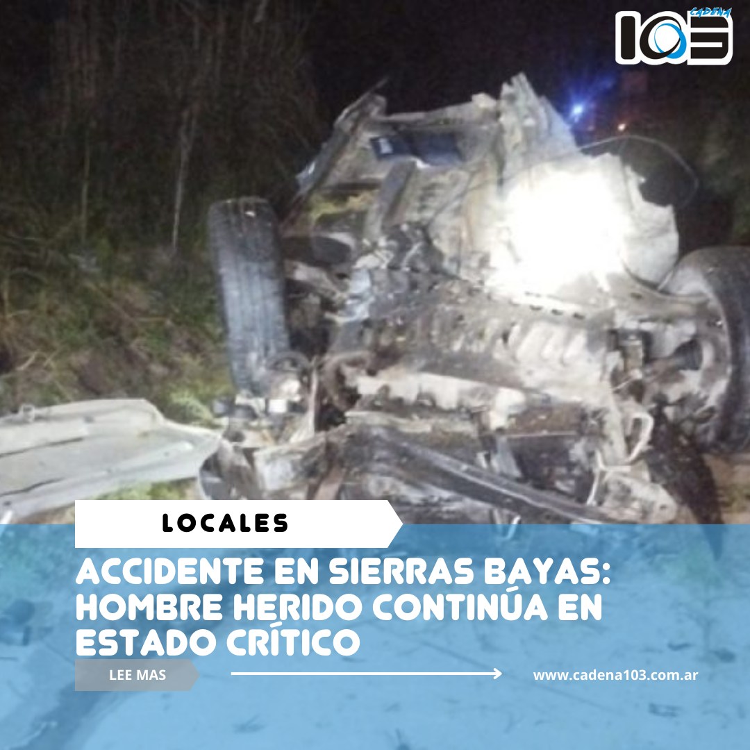 Un hombre de 43 años que sufrió un gravísimo accidente en la madrugada del domingo en el acceso a la localidad de Sierras Bayas sigue en estado crítico. Actualmente se encuentra internado en la Unidad de Terapia Intensiva del Hospital Municipal “Dr. Héctor M. Cura” con pronóstico reservado, según informaron fuentes oficiales.