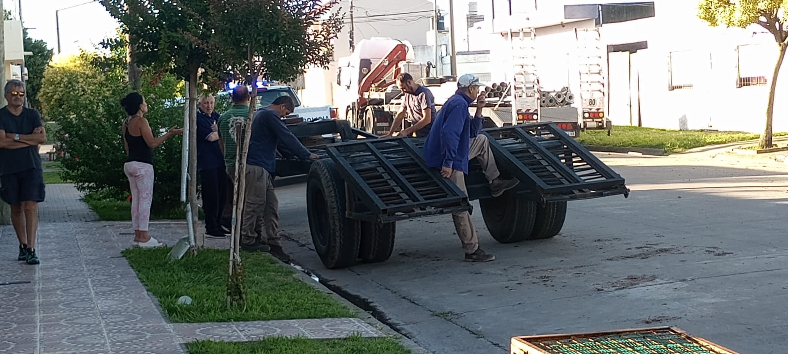 El martes, al momento de la descarga material, se hizo presente personal policial, vecinos e incluso había una abogada que quienes se comunica..