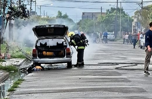 Pese al trabajo de Bomberos el incendio tuvo como consecuencia pérdidas totales en el coche. Se investiga si el siniestro fue intencional.