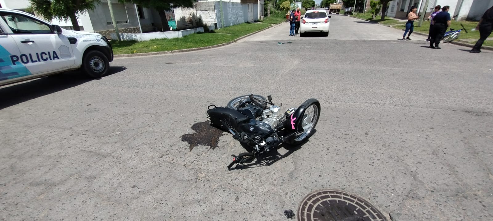 Fue cerca de las 14 horas en Grimaldi e Independencia donde colisionaron un auto marca Peugeot con una moto 125 cc marca Motomel en la que circulaba un hombre.