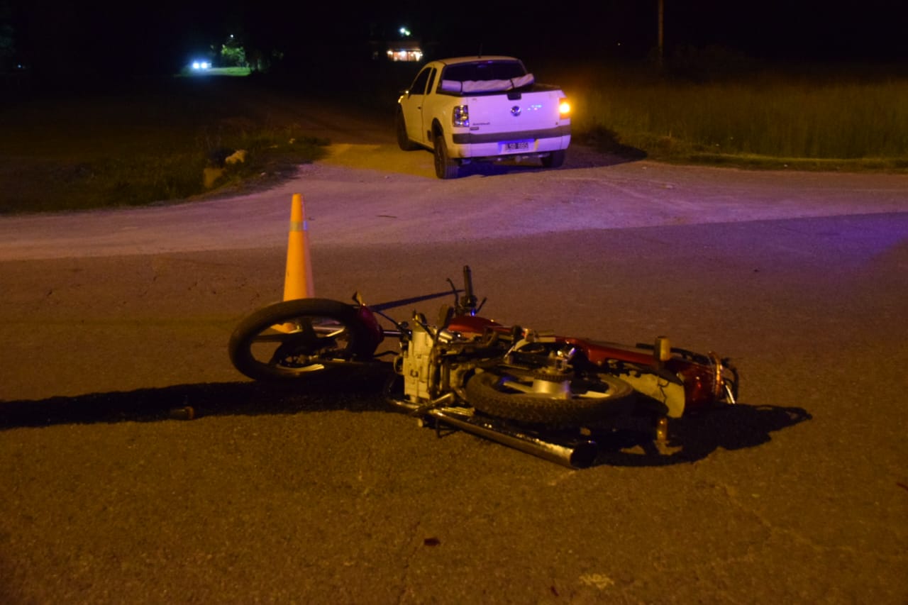 El hecho de tránsito se produjo cuando una camioneta VW Saveiro que intentaba ingresar a la calle 205 embiste a una moto Mondial 150cc.