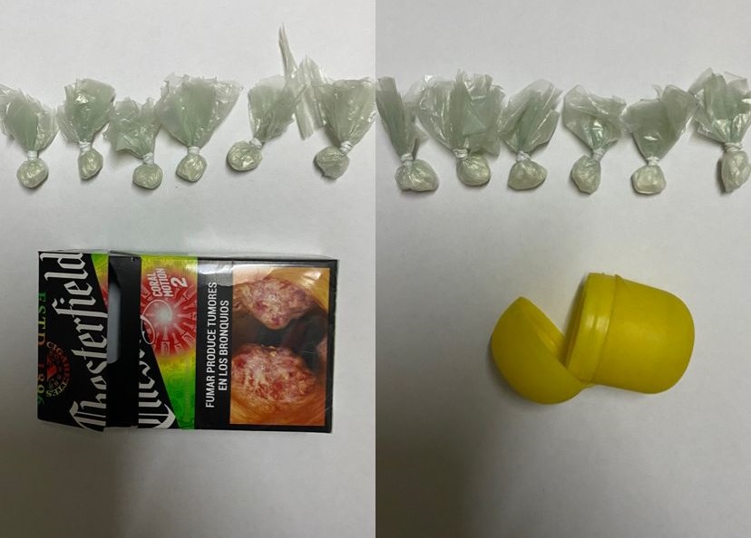 Al llevar a cabo la aprehensión, los agentes policiales pudieron constatar que en el interior del envase plástico había 6 envoltorios de nylon color verde conteniendo cocaína y una caja de cigarrillos en cuyo interior había otros seis envoltorios con la misma sustancia, serían presumiblemente estupefacientes listos para ingresar al circuito de distribución.