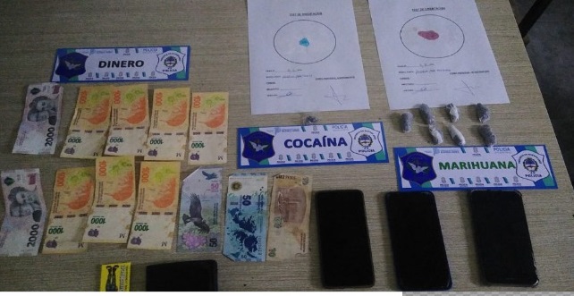 Al aprehendido le secuestraron más de 10 mil pesos en efectivo, tres teléfonos celulares, siete envoltorios de marihuana y un envoltorio de cocaína.