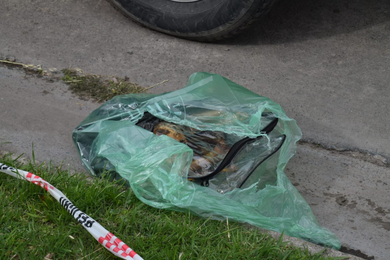Según se informó, los trabajadores de transporte Malvinas que realizaban sus tareas diarias encontraron una bolsa color verde que en su interior tenía otro bolsón y dentro de este se encontraban los restos humanos.