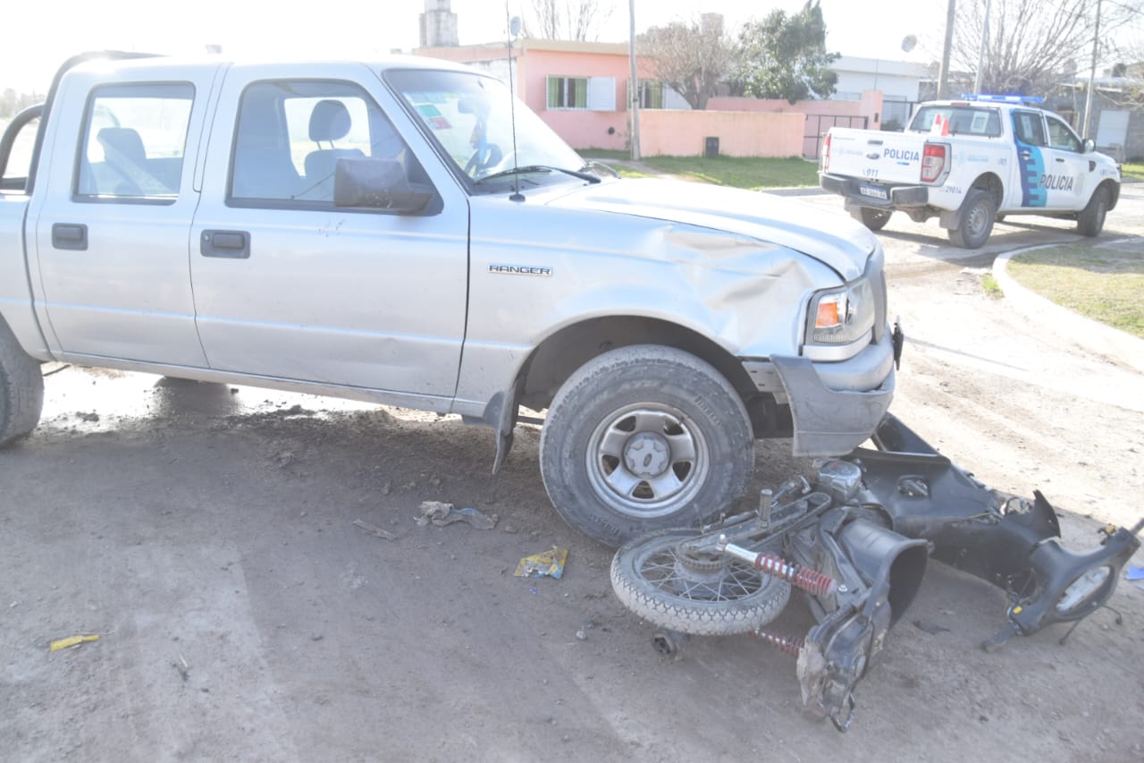 El camioneta circulaba por Calle 17 al tiempo que la moto se hacía lo propio por Rufino Fal. Fue en la intersección de ambas arterias donde se produjo la colisión.