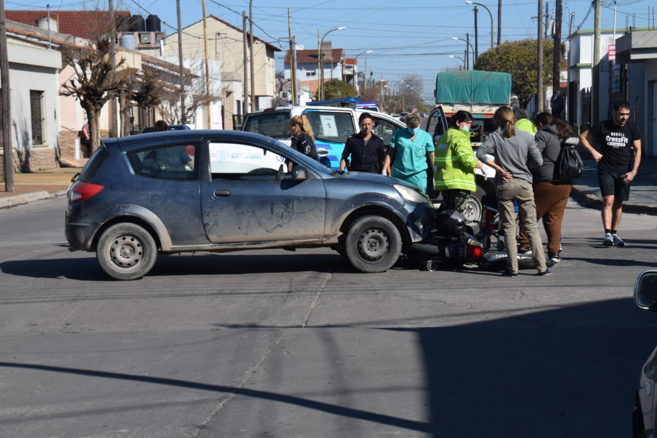 En el incidente vial se vieron involucrados un auto y una moto.