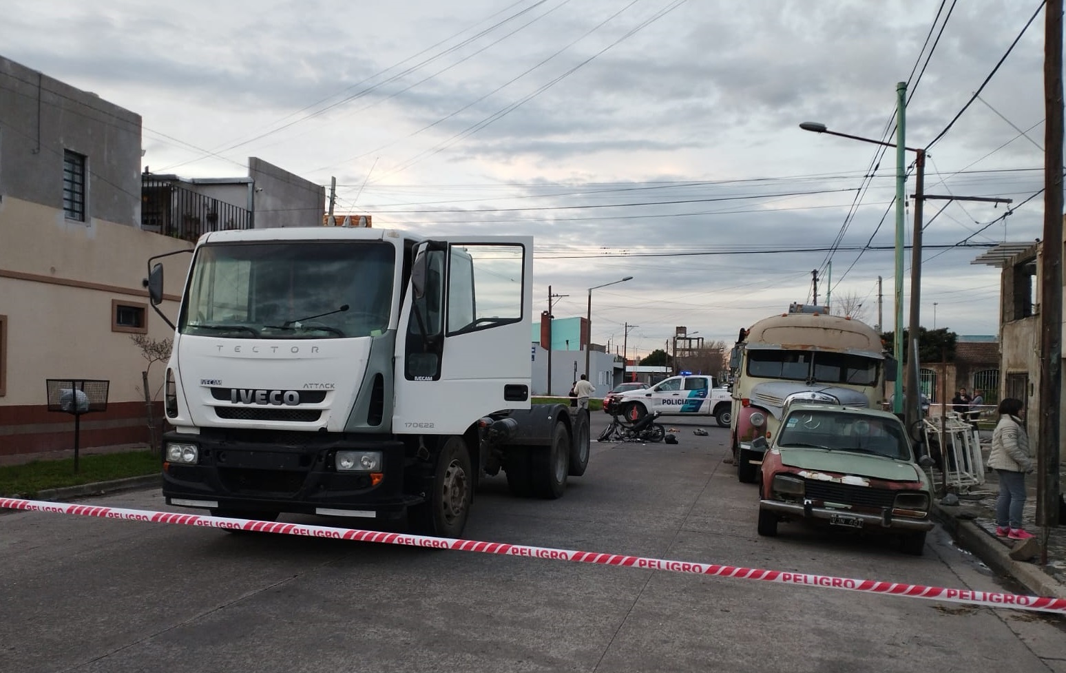 Todo sucedió cuando un camión IVECO que circulaba por Berutti impacta contra una moto Gilera 110 en la que viajaba el herido cuando se movilizaba por Líbano.