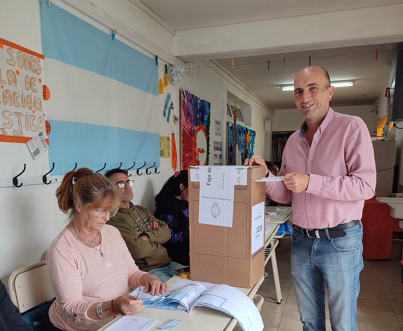 El candidato a intendente por el FIT, Agustín Mestralet votó pasado este mediodía en la Escuela 60, ubicada en Belgrano casi Alberdi.