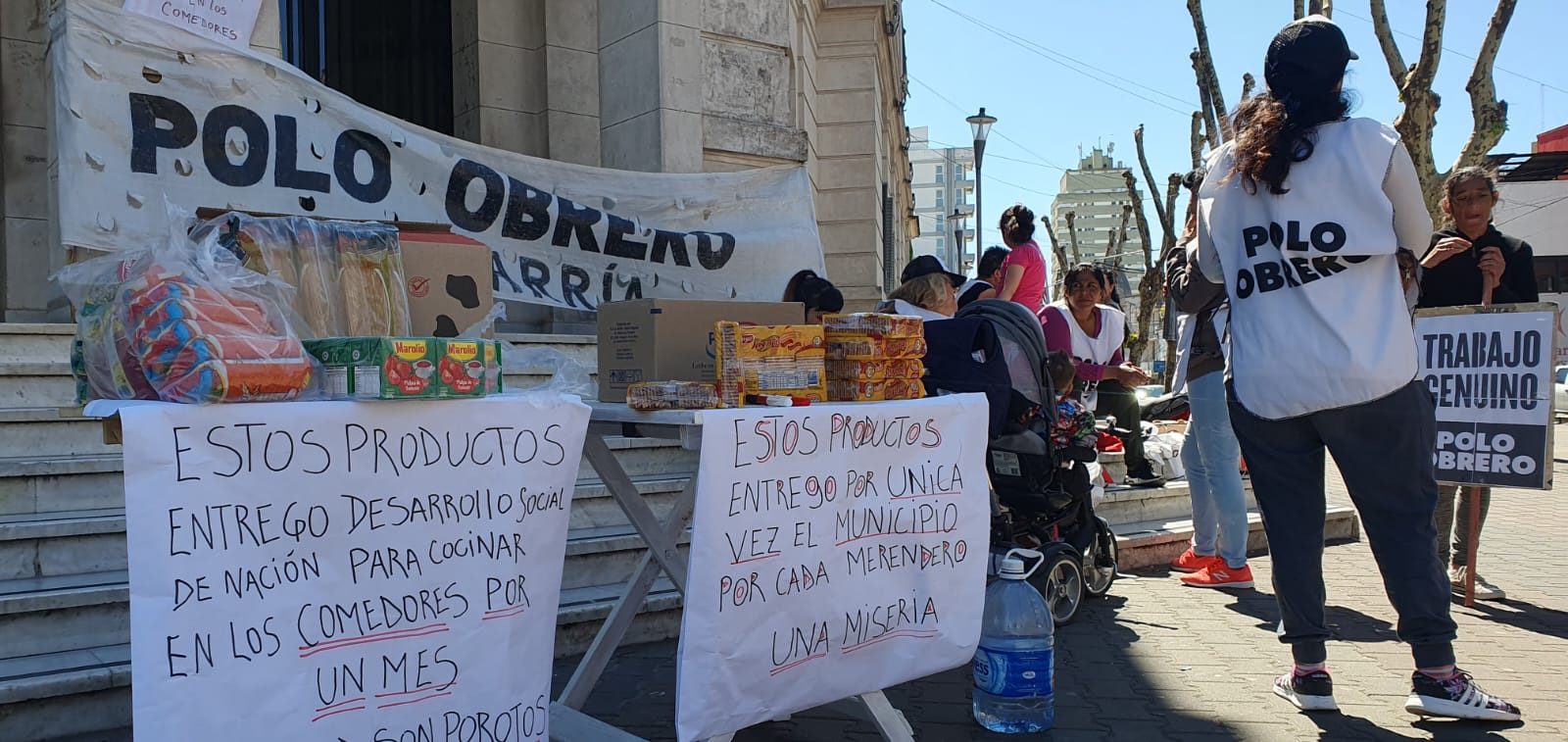Este miércoles el polo Obrero se movilizó a las puertas del municipio para pedir soluciones concretas a las demandas al gobierno en el ámbito nacional, Provincial y Local. Piden asistencia integral a los comedores, duplicar el monto de tarjeta Cabal y apertura universal para quien la necesita, solución a las diferentes problemáticas de acceso a la vivienda, generación de trabajo genuino a partir de las obras de urbanización en los barrios, mejoramiento de atención en los centros de atención primaria de salud y hospital, entre otras demandas.