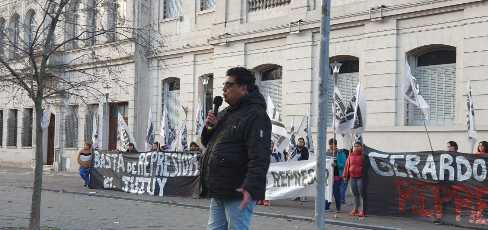 Gremios que integran el Movimiento Obrero de Olavarría, referentes de la Comisión por la Memoria, del Partido Obrero, sindicatos docentes, y distintas personas, se movilizaron en la tarde de este jueves al Paseo Jesús Mendía para manifestarse en contra de la represión de Gerardo Morales, y al cumplirse 47 años de la noche del apagón de Ledesma.