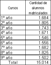 1999 indican que 15.014 alumnos reciben educación. Dentro de estos 26