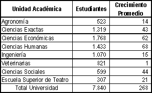 estudiantes en todas sus áreas. A su vez, el cuadro adjunto ilustra sobre la