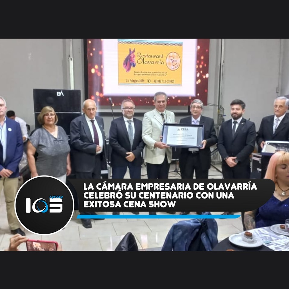 En el marco de su 100° aniversario, la Cámara Empresaria de Olavarría organizó una destacada cena show en el Club Pueblo Nuevo. El evento reunió a empresarios, autoridades municipales y representantes de instituciones como la Confederación de la Mediana Empresa, Feba, el Nucleamiento Empresarial del Noroeste Bonaerense, Coopeletric, la Unión Industrial y la Sociedad Rural, entre otros.